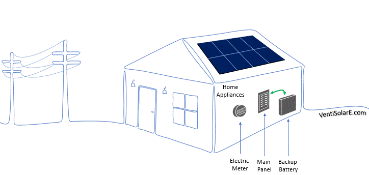 With this system the generated power satisfies the consumer’s power needs when the sun is bright, and the extra generated power is sent to the grid by running the electric meter backwards. During the night  the grid satisfies the needs of the consumer. In perfect conditions this back-and-forth exchange of KWh will result on zero electric consumption or a zero electric bill at the end of the month.  This is called net-meeting.